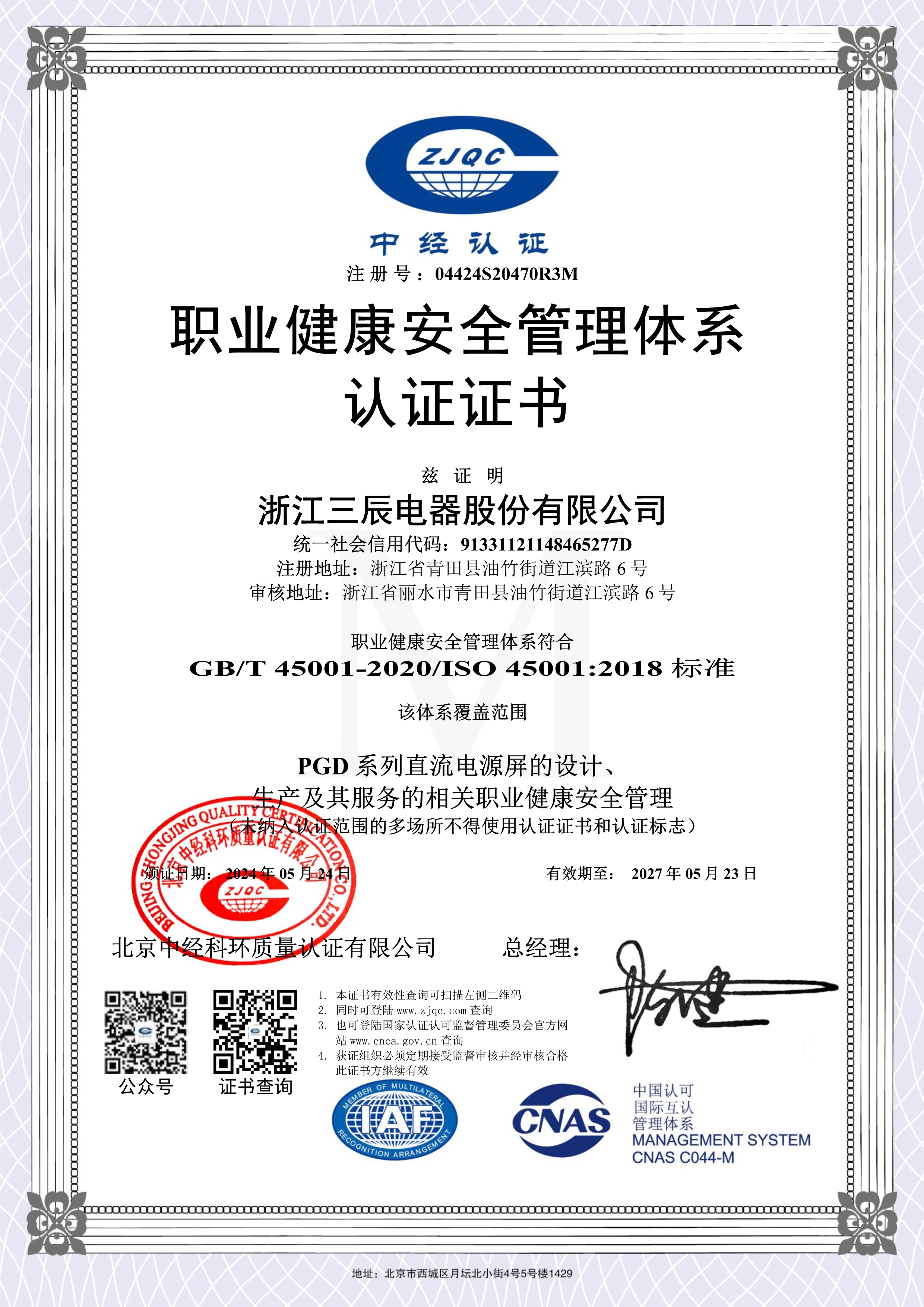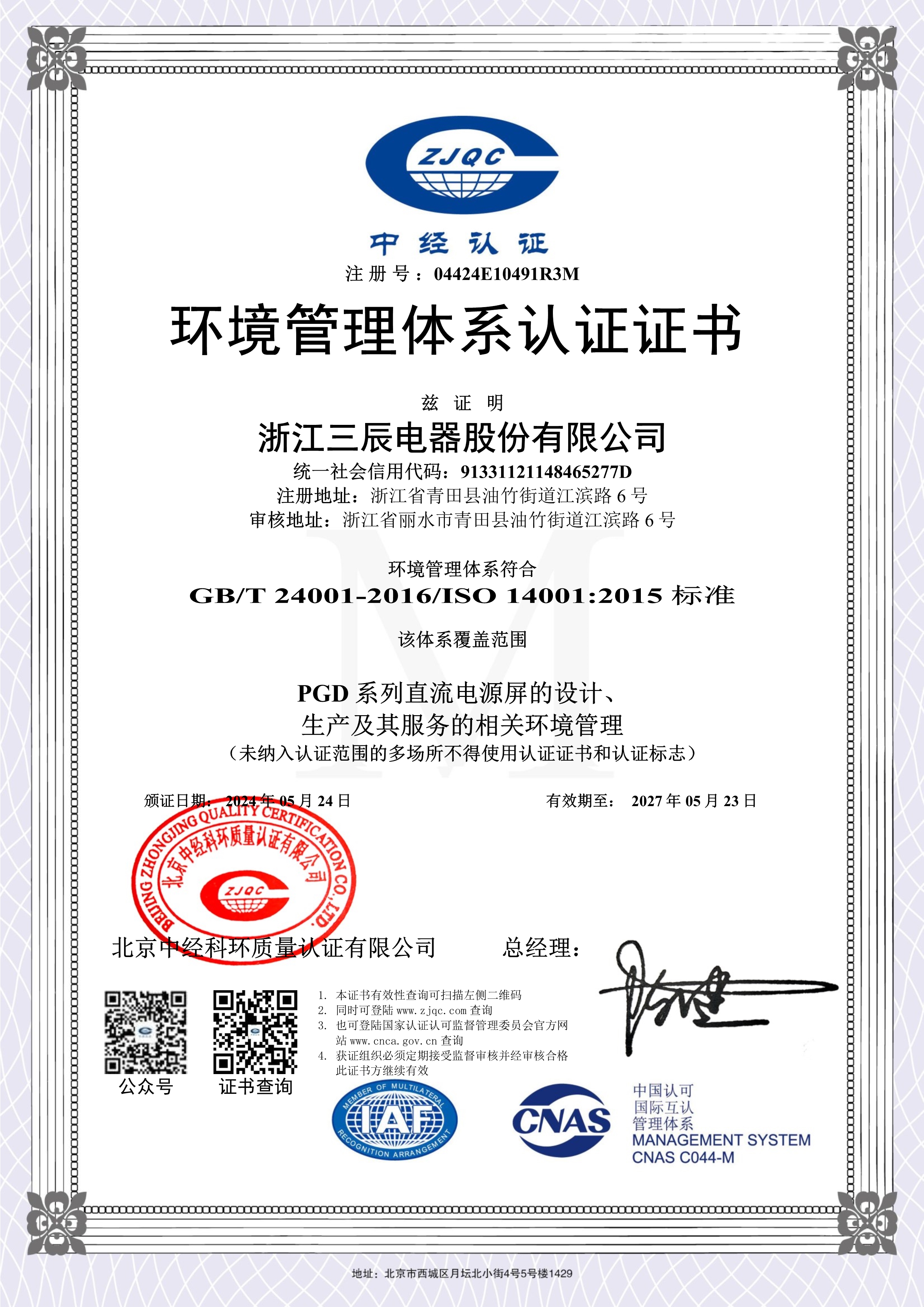 九十年代以来,企业获得原机械部和电力部“低压成套开关设备生产秩序与产品质量整顿”合格证书;企业先后获得“ ISO9001:2000 质量体系认证”,“产品质量认证”,“ ISO14001 : 2004 环境管理体系认证”,“采用国际标准合格证书”,“ '97 采购浙江首选品牌”,“ PGD2 产品全国星火项目金奖”,“ PGD6 程控高频开关电源直流屏 2000 年获电力部和浙江省科技进步三等奖”,“ PGD2 和 PGD5 及 PGD6 型产品获国电公司产品质量部门确认为采用标准国内先进水平”,“ PGD 型省级高质量科技产品”,“ SCPG 型省级高质量科技产品”,“ PGD6 、 PGD7 省级高新技术产品”等证书, SCWZ 综合自动化系统被列为省技术创新项目, PGD 型直流电源设备列入《第二批全国城乡电网建设与改造所需设备主要设备产品及生产企业推荐目录》之中。此外公司还获得“电力工业部归口管理企业”,“中国化工装备总公司定点生产单位”,“行业经济效益评价”及“浙江省高新技术企业认定证书”等,公司多次被评为省级“重合同守信用”单位,成为浙江省首批“诚信企业”,2003 年 3 月公司被授予“全国守合同重信用企业”及“浙江省工商企业信用 AAA 级单位”,“浙江省重质量、守诚信”示范单位。 2004 年 1 月“三辰”商标被评为“浙江省著名商标”,产品被评为名牌产品,2007年10月被授予全国“质量、信誉双保障示范单位”,成为国家级火炬计划项目企业。