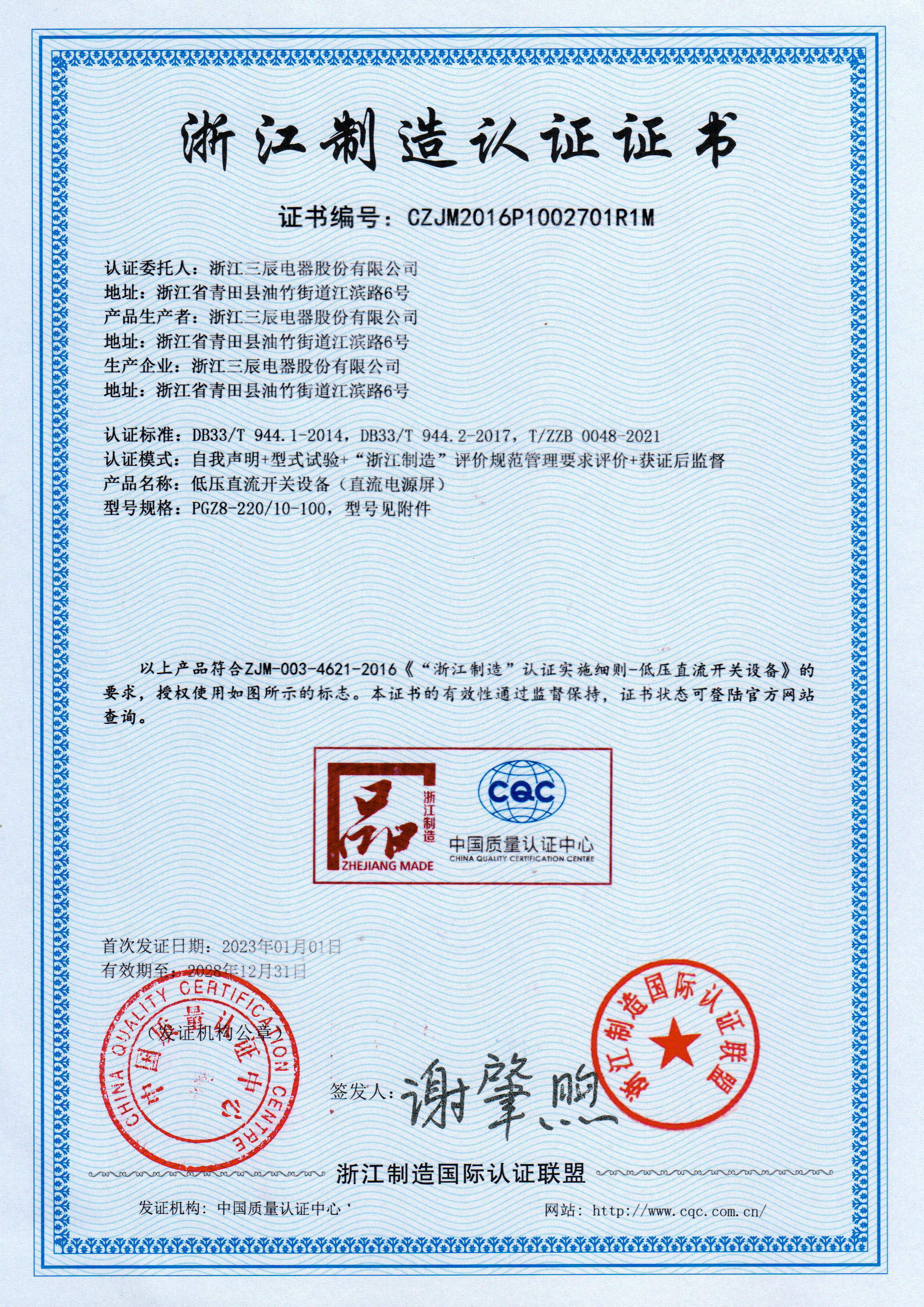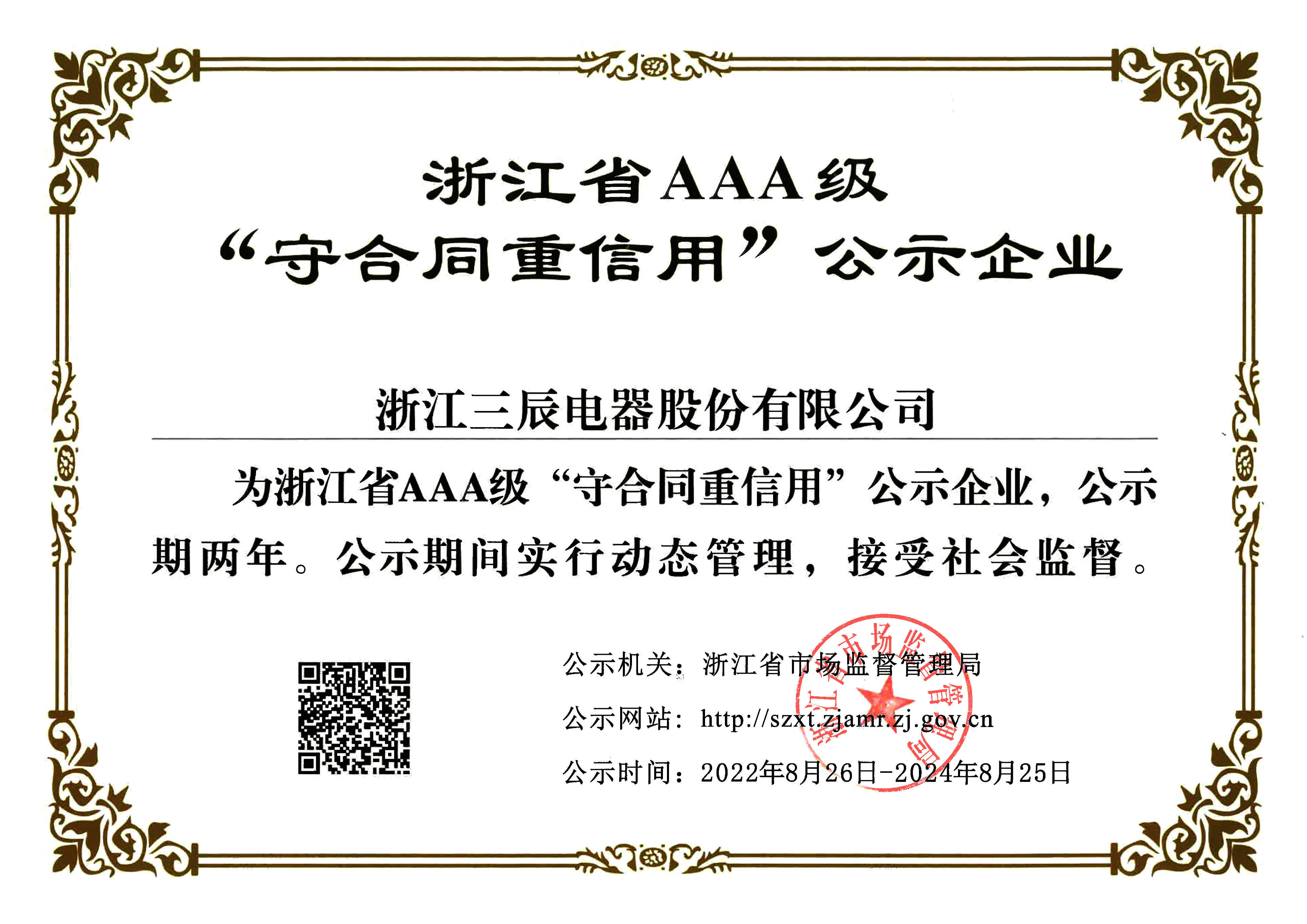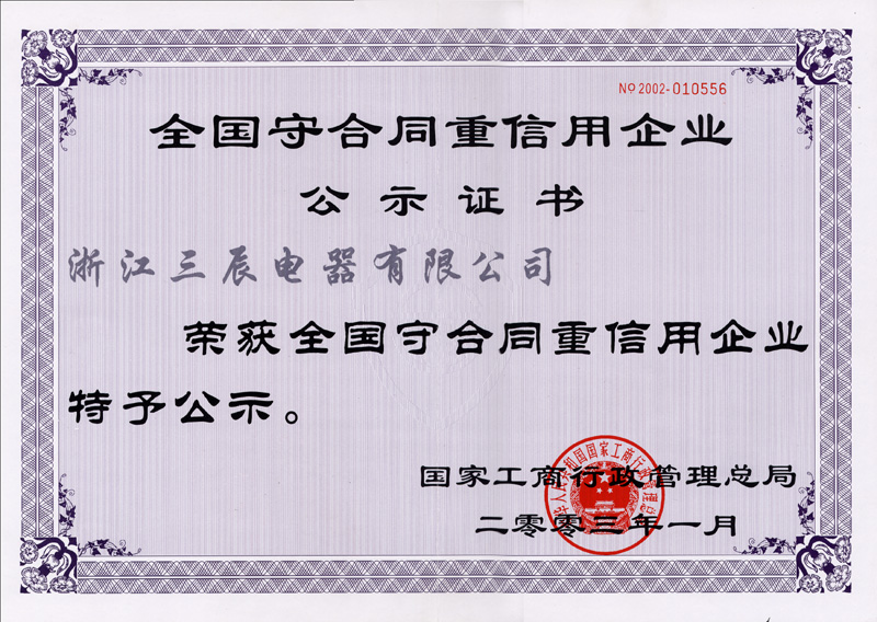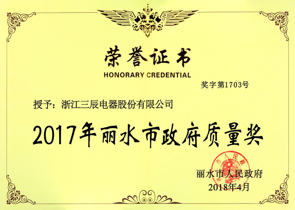 九十年代以来,企业获得原机械部和电力部“低压成套开关设备生产秩序与产品质量整顿”合格证书;企业先后获得“ ISO9001:2000 质量体系认证”,“产品质量认证”,“ ISO14001 : 2004 环境管理体系认证”,“采用国际标准合格证书”,“ '97 采购浙江首选品牌”,“ PGD2 产品全国星火项目金奖”,“ PGD6 程控高频开关电源直流屏 2000 年获电力部和浙江省科技进步三等奖”,“ PGD2 和 PGD5 及 PGD6 型产品获国电公司产品质量部门确认为采用标准国内先进水平”,“ PGD 型省级高质量科技产品”,“ SCPG 型省级高质量科技产品”,“ PGD6 、 PGD7 省级高新技术产品”等证书, SCWZ 综合自动化系统被列为省技术创新项目, PGD 型直流电源设备列入《第二批全国城乡电网建设与改造所需设备主要设备产品及生产企业推荐目录》之中。此外公司还获得“电力工业部归口管理企业”,“中国化工装备总公司定点生产单位”,“行业经济效益评价”及“浙江省高新技术企业认定证书”等,公司多次被评为省级“重合同守信用”单位,成为浙江省首批“诚信企业”,2003 年 3 月公司被授予“全国守合同重信用企业”及“浙江省工商企业信用 AAA 级单位”,“浙江省重质量、守诚信”示范单位。 2004 年 1 月“三辰”商标被评为“浙江省著名商标”,产品被评为名牌产品,2007年10月被授予全国“质量、信誉双保障示范单位”,成为国家级火炬计划项目企业。